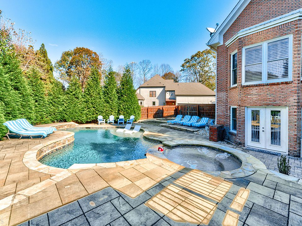 "The prized property of Oxford Mill awaits! Fabulous, four-sided brick, cul-de-sac, home located within coveted Swim/Tennis community of Oxford Mill in Johns Creek! Nearly Half Acre, fenced lot w/ outdoor kitchen under Waterproofed deck, wired outdoor speakers / TVarea, custom heated Pool & Spa w/ Stone Pavers, and garden beds for your favorites to grow! Level upper grass area, great play area for all! Huge Trex Deck overlooking the pool, with Gas Fire Pit& eating area! The interior is massive, with loads of square footage, storage space, and plantation shutters on the main & second floors! The main level has hardwood floors throughout, including the Owners Suite w/ his & her walk-in closets. Living room with fireplace overlooks the deck and pool area. Keeping room with fireplace off the Chef's Kitchen w/ beautiful, stained cabinets, granite countertops, breakfast room & breakfast bar. Oversized Dining Room that connects to the Chef's Kitchen via the Butler area. Upstairs features three additional spacious bedrooms (one with massive walk-in closet), an added huge bonus / flex room being used as th bedroom, two jack & jill bathrooms, and a custom addition home office w/ walk-in storage area. The Finished Terrace Level, all custom additions to the home, features three daylight entrance doors, a 6th bedroom w/ fireplace, full bath, custom exercise room w/ gym quality flooring, a massive recreation room, a custom-built Media / Theater Room w/ wired for surround sound, half bath, full Kitchenette, custom built cabinets for housing pool storage, plus a workshop and unfinished storage room! This home truly has it all, inside & out! Outstanding schools & location just minutes away from The Forum, Avalon, local dining & shopping, greenway trails & GA 4oo!