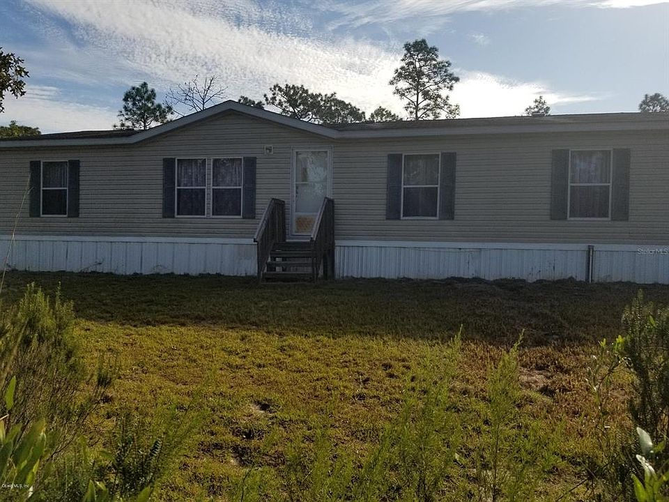 MANUFACTURED HOME ON 4.26 ACRES! Check out this 2008 Double wide with 3 bedroom and 2 full baths. Split bedroom plan with 26' family room, built in entertainment center and double sliding glass doors leading onto the wrap-around porch. 4+ acres of wooded privacy. Inside you'll find an enormous kitchen and dining room with plenty of storage. Stainless steel appliances with whirlpool double oven. Master bedroom featuring a large walk-in closet that opens into the bedroom and bathroom.