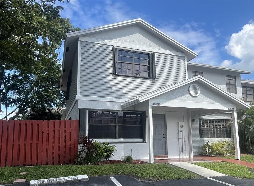 Corner lot townhouse with spacious fenced in backyard in the heart of Pembroke Pines. This unit has 2 bedrooms and 1.5 bathrooms. Updated kitchen cabinets and bathrooms. New flooring on the first floor. Two assigned parking spots in front of the unit. Cable and internet included in HOA. Central A/C system newly installed in 2023. Pets allowed. Desirable location near I-75, shopping centers, Pembroke Lakes Mall, Pembroke Gardens and more.