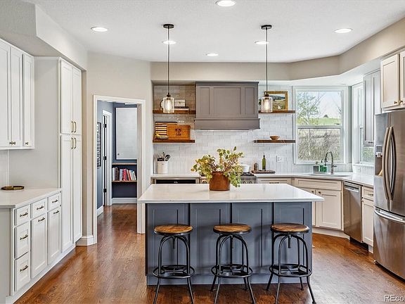 This Sanford home is tucked away in the highly coveted Weatherstone neighborhood! Located on a quiet cul-de-sac lot right across from Pronghorn Park and the East West Trailhead. Inside shows like a true model home with updates throughout! Newly remodeled kitchen that boasts 42" shaker cabinets, 6-burner gas range, an additional 5-in-1 oven/microwave, quartz counters and stainless steel appliances. The layout has also been reconfigured to add a massive walk-in pantry and bonus butlers prep area leading to the dining room. Enjoy the efficiency of the updated main floor laundry room with it's numerous storage cabinets, countertop, and space for shoes and coats. Wood floors are found throughout including updated main staircase. Upstairs you'll appreciate the primary bedroom suite with its bonus seating area, and a completely remodeled 5-piece bath with its massive shower and freestanding tub. Rounding out the upstairs is the additional ensuite bedroom w/ private bath, plus 2 additional bedrooms and shared Jack-n-Jill. The full sized finished basement boasts multiple spaces including an exercise room, theater room, guest bedroom, 3/4 bath, and wet bar for all your get togethers. Let's not forget the outdoor entertainers dream with it's wrap around yard, built-in storage shed, custom covered patio that includes a built-in bbq, flatscreen tv, lighting, and a separate space with it's own gas firepit! Newer furnace, AC, and water heater. The location is spot on with close proximity to the private neighborhood pool, miles of trails, multiple parks, grocery stores and restaurants. HOA includes access to all 4 Highlands Ranch Rec Centers, where you can enjoy pickleball courts, indoor/outdoor pools, batting cages, climbing wall, basketball courts, fitness classes, racquetball, running tracks, and state-of-the-art fitness equipment. Make your move today!!