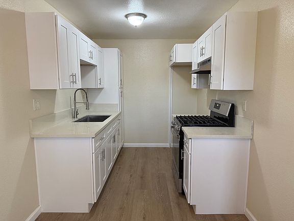 Very nice, fully renovated, large 2 bdrm 1 bath upstairs unit with luxury vinyl planks flooring throughout. Updated kitchen with quartz countertops, large stainless steel sink with garbage disposal, new shaker kitchen cabinets, and brand new stainless steel stove/oven with exhaust vent. Upgraded bathroom with beautiful porcelain flooring, with matching vanity and lighting fixtures, and a newly reglazed cast iron bathtub with porcelain walls up to the ceiling. Master bedroom with walk-in closet. Spacious living room area. New paint throughout. Comes with 1 car detached garage with no extra charge. Located inside the Riverglen Apartment Community, but privately owned. Proximity to Kaiser Permanente Medical Center & Galleria Mall in Tyler St. Gated community. Association dues, water & trash paid by the owner. Showing by appointment only. Available NOW. 12-month lease minimum. Respect the property, the other residents, and the management and owners. The tenant is responsible for electricity, gas, and internet bills.