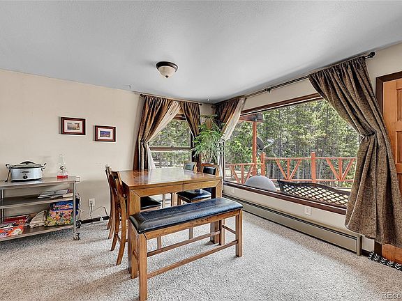 Welcome to your secluded dream home nestled in the picturesque Conifer area. This charming 3 bedroom, 2 bathroom home boasts 1,608 square feet of living space, providing ample room for you and your loved ones to make memories that will last a lifetime. The property features a variety of rooms, each with its own unique style and features. The front entry welcomes you with hardwood flooring. The living room is carpeted and features a cozy fireplace. Access the large deck right of the living room. Perfect for outdoor entertaining and relaxation. The kitchen is tastefully designed with a backsplash, light tile floors, and appliances with stainless steel finishes. The dining area is filled with natural light. This home also offers the convenience of an attached 4-car garage, and barn providing plenty of space for all your vehicles and storage needs. And with a 2-acre lot, you'll have plenty of room to roam and explore the tranquil natural surroundings. This home is secluded; however, access to Denver Metro is still within reach. Don’t miss out on this opportunity
