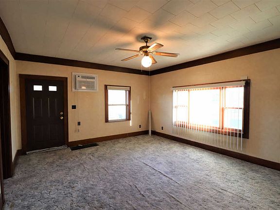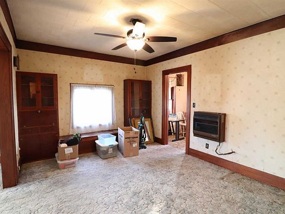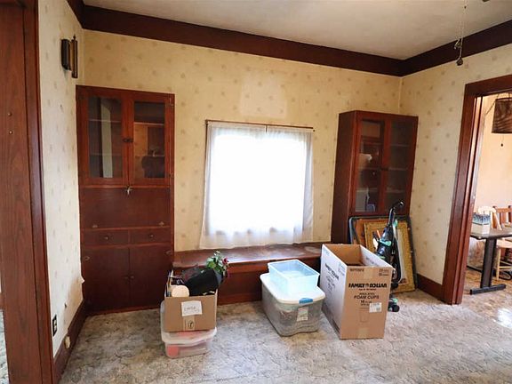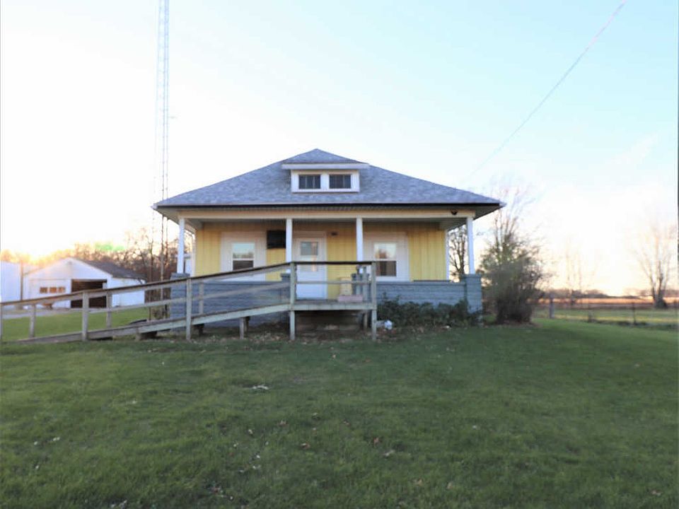 Lots of potential with this Sears and Roebuck Bungalow situated on 5+ acres. This little 1,176 sqft gem features an enclosed porch, spacious kitchen, formal dining room with built in cabinets, bench and wall heater, large living area with wall a/c unit, 2 bedrooms, 1 full bath, and laundry on the main floor. Original wood doors and trim throughout. All appliances are included. This home has a full unfinished basement and a walk up attic area that could be converted for extra space. There is a detached 2 car garage and a 40 x 60 steel framed building for more storage.
