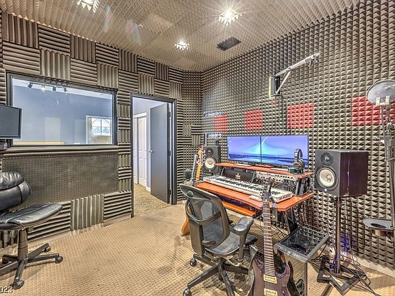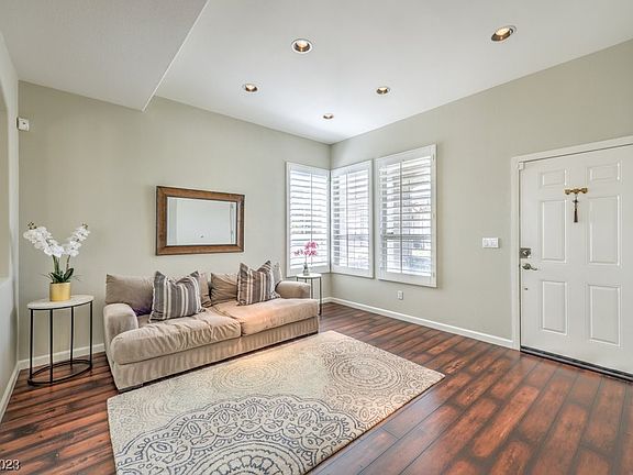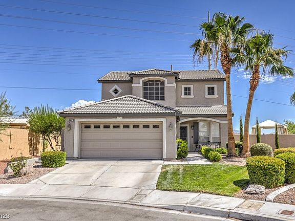Welcome Home! Beat the summer heat with this dream oasis backyard close quarter acre lot with a pool, spa, and resort style cabana, mature landscaping. REAL grass to play football/soccer or camp out under the stars and make s'mores in the fire pit. Home features: 4 bedrooms and 3 bathrooms. Bonus soundproof room for your YouTube/content maker or use it as music studio - equipped with dedicated AC unit. Sought-after bedroom downstairs with access to a bathroom and shower across the hall - turn into an office or guest room. Stainless steel appliances, new blinds, tons of storage cabinets and overhead racks in garage. Enjoy scenic valley views from primary bedroom balcony having no neighbors in back and side. Centrally located for easy access to Downtown Summerlin, Boca Park, Tivoli Village, The Village Center, etc. Elite private schools – Adelson, Faith Lutheran, Meadows and highly rated public schools in the vicinity. Easy access to 215, Summerlin Parkway.