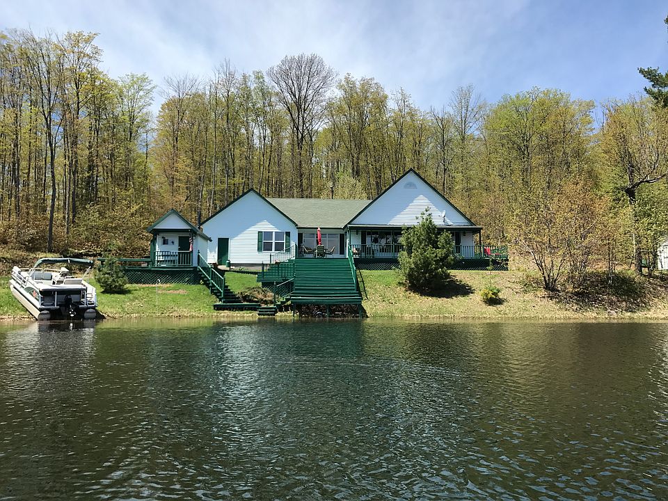Beautiful cottage on a private lake with 297 feet of lake frontage on Lake Eva in Toivola, Michigan. 3 bedroom and 1.5 baths with a separate shower and tub in the main bathroom. Hardwood flooring throughout most of the floors with tile flooring in the other sections. Tongue and groove pine covers most of the walls. Beautiful covered porch in front and wrap around deck allow for beautiful viewing angles of this secluded private lake with great fishing and plenty of outdoor activities nearby. Outdoor wood burning sauna attached to the front deck for easy access to the water. Attached workshop/storage for working on projects or storing your ATV. Detached shed in the back provides even more storage. House is fully insulated with oil heat and could be lived in all season. Other homes on the lake have permanent residents year round. Two mile private drive provides access to north half of the lake. Call (906) 369-3210 with any questions.