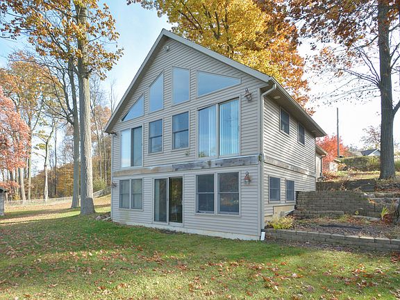 This FUN & entertainment friendly Crooked Lake home must be toured to appreciate all it offers its next proud owners. Having an open plan on both the main & walk-out levels, a terrific lake view is always present. Each level is arranged independently with kitchen, laundry, bathing, gathering & sleeping accommodations, making it perfect for the weekender get away for the extended family, or for providing separation for daily living with your active teens. This chalet with vaulted ceilings has received many recent updates as well as an addition. You will find it inviting & 98% complete.(The main level kitchen area has new stainless appliances, granite counters & plumbing, ready for assembly). Schedule an apt. today to view a rare NICE lakefront home at such an affordable price!