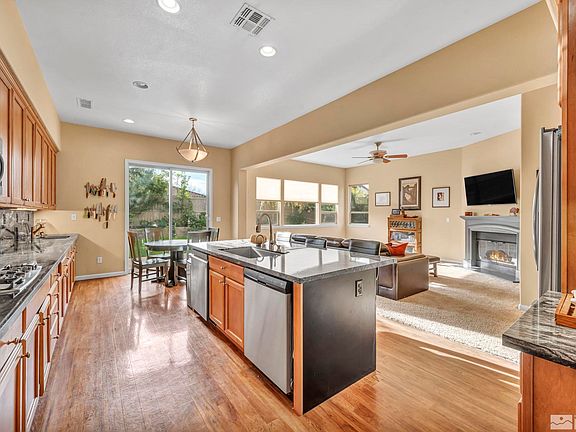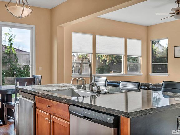 Welcome to 10655 Autumn Walk Lane, a beautifully upgraded 4-bedroom, 3-bathroom home offering 2,371 sq. ft. of living space in the heart of South Reno. This elegant property features top-of-the-line amenities, custom finishes, and a professionally landscaped yard, making it both an entertainer's dream and a peaceful retreat.The spacious chef’s kitchen is designed with both style and functionality, featuring granite countertops, double ovens, gas range, built-in wine frig., hot water tap,and two dishwashers, Adjoining the kitchen is the welcoming family room, where a cozy gas fireplace provides warmth and ambiance. The hidden wiring for your TV and surround sound system ensures a clean, modern look, making this space perfect for relaxing or entertaining guests. This home offers flexibility with the option for a second primary suite, in addition to the recently remodeled master suite. The master suite is a luxurious retreat, boasting an ensuite bathroom with dual vanities, a soaking tub, and a very large walk-in closet with enhanced lighting. Two of the bedrooms feature their own ensuite baths with bidets, providing privacy and convenience. Smart home technology is integrated throughout, with smart/WiFi-enabled exterior and some interior lighting, along with a central heating and air system powered by natural gas, all controlled via a smart thermostat. The home features high ceilings throughout, enhancing the open and airy feel. Enjoy the abundance of fresh fruit from your apple, pear, and plum trees, along with grapevines, blackberry, raspberry, and fig plants. The fully fenced backyard also features raised garden beds and established herb gardens, and a smart/WiFi-enabled sprinkler system with drip irrigation covers the entire yard. The patio offers a perfect space for outdoor dining and relaxation. The oversized three-car garage, with garage door openers and a car charger plug ready for your electric vehicle, provides ample space for vehicles and storage. Additional features include a Smart Box for organized cabling, custom paint throughout, and a location in a quiet neighborhood zoned for top-rated schools (Brown, Depoali, Damonte). This home offers the ultimate combination of luxury, comfort, and convenience. With modern upgrades, smart home technology, and a beautifully designed outdoor space, it’s ready for you to move in and enjoy. Don’t miss your chance to own this stunning South Reno property!