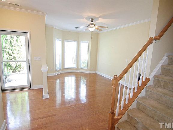 Beautiful townhome that lives large! Spacious, open floor plan. Hardwoods throughout 1st fl. Formal dining rm w/chair rail. Living rm w/charming bay window, corner fireplace & TV niche. Great kitchen w/stainless appliances, Corian countertops, breakfast nook, desk & pantry. Master suite has vaulted ceiling, whirlpool tub & walk-in closet w/built in shelving. Another bay window in secondary bedroom. Convenient 2nd fl. laundry rm. Private patio w/tree lined buffer. Greenway trails right across the street!