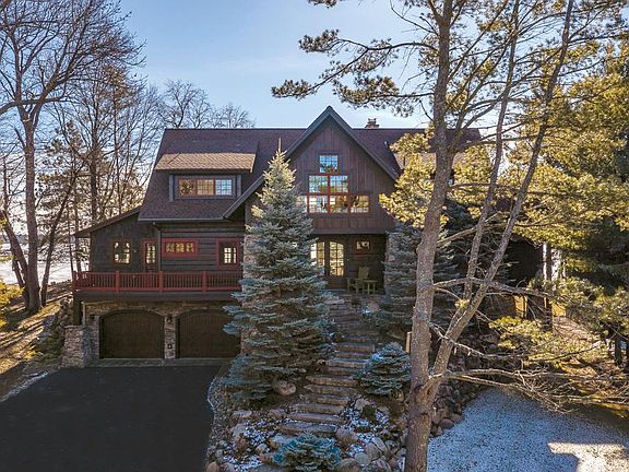 Nestled on the tranquil shores of the Whitefish Chain…this 5BR-4BA Custom Built Up-North Lodge is lake living at its finest. Enjoy 101’ of easy elevation to a pristine sandy lake bottom, crafted w/meticulous attention to detail & offers a stunning one-of-a-kind rustic-stone FP, grand cathedral T&G ceilings, log accents; wall of lakeside windows w/amazing southerly Lake Views, bright & cheerful kitchen w/high end SS appliances-large island-private pantry; main level owner’s suite w/FP & huge private BA; upstairs offers 4 add’l BR & 2 BA which includes a fabulous sleeping loft w/built-in bunks…the kids will love it. LL w/a side walkout-mudroom-a dog wash & over 900 sq. ft. of unfinished area waiting for your personal finishing touches. Step outside to a patio w/an outdoor kitchen & FP with one of the most impressive lake views on the entire chain. The detached heated garage offers a year-round cottage guest suite w/4 beds, kitchenette & BA…your family & friends won’t ever want to leave!