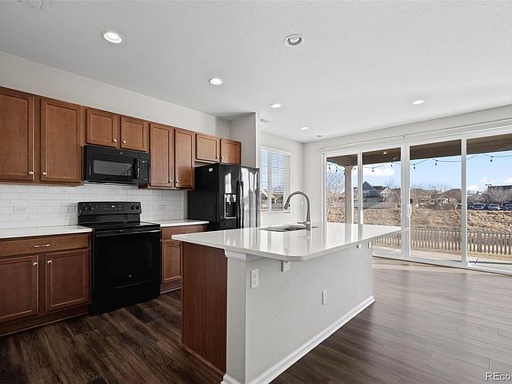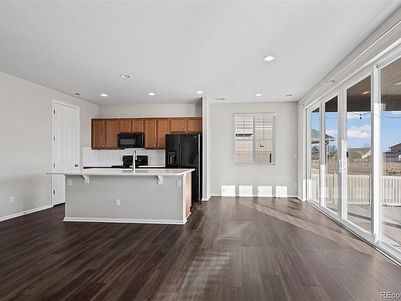Great opportunity to gain instant equity with this beautiful two-story home! This property is part of the resale portion of a buyout process, offering both move-in equity and a prime location. Backing up to dedicated open space with a generously sized backyard, this home offers ultimate privacy with no neighbors behind. It’s the perfect setup to enjoy serene surroundings while making a smart investment in open space living! Near parks, trails, open space, shopping, and dining, this location is ideal for keeping you entertained. This home welcomes you in with luxury vinyl plank flooring flowing seamlessly into a bright and open great room illuminated by natural light streaming through double sliding glass doors. The eat-in kitchen boasts a large center island, pantry, and subway tile backsplash. Upstairs, you'll discover a versatile loft, a primary suite, and two secondary bedrooms. Step outside to the expansive, fully fenced backyard, complete with grass and a covered patio—perfect for outdoor gatherings and relaxation. Near I-76 makes commuting to DIA, Denver, and surrounding areas easy! Don’t miss this amazing opportunity to gain instant equity!!