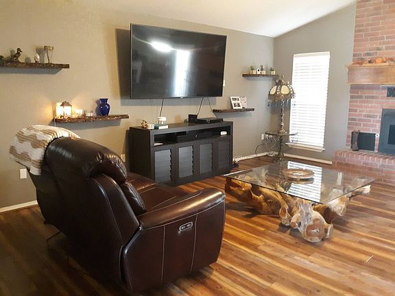 Great location for this beautiful country home not far from town on 8.03 acres more or less. If you are looking for a home out of town although still close this is a must to see. The land is fenced and features a nice size pond and several mature pecan trees. This updated home has 3 bedrooms, 3 full bath rooms with a walk-in closet in the master bedroom. The shower and stool are separated from the jetted tub in the master bath. The kitchen features granite counter tops, a breakfast bar and lots of cabinets. Flooring has the hardwood look with laminate through out except the kitchen, entry and bathrooms which have tile. The spacious living room has a wood burning fireplace that has a thermostat to control the heat to the bedrooms. A large window in the formal dining room brings in natural light. The private office with a storage room for supplies seams to be a must with working from home parents. A storage room for supplies is in the separate laundry room which has cabinets. The two car attached garage allows plenty of room for two vehicles and some storage area. For the person that likes a large work shop this property has a 30X40 metal garage/shop with a walk in and overhead door. attached to it is a 30X50 shed/barn for equipment or animals.