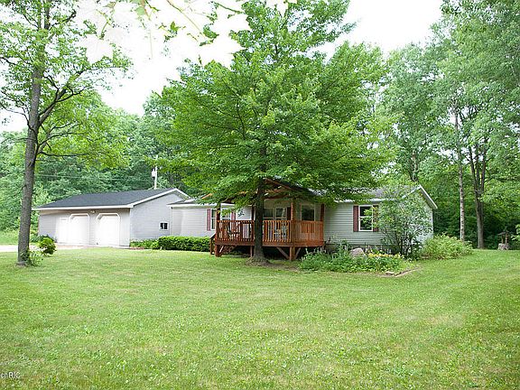 Pride of ownership shines through with this fully remodeled 3 bed, 2 bath home on 5.22 acres of wooded bliss. Sitting off the road approx 800', in a private and secluded setting, this is an outdoorsmans paradise! Over 1400 sq ft of main floor living space, oversized 2 stall detached garage/pole barn, large yard, cement sidewalks, and great landscaping make this more than appealing. Entertaining family and friends made easy with the open floor-plan and large rooms. Take a moment for yourself in the master suite with attached bath. Watch the wildlife from all sides of the home from the covered front deck, or large back deck. Outdoor storage is no problem with the additional 16x40 out-building. Private pond on property. Great location and just minutes to the 131 Expressway.