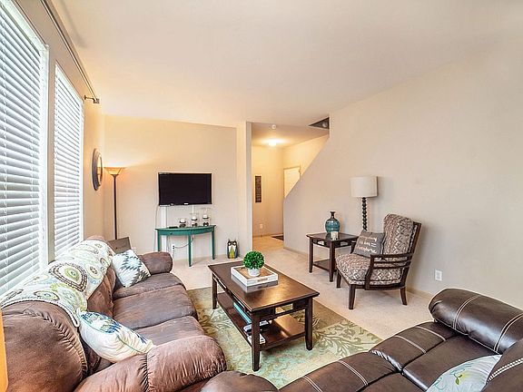 - Living Room Desc: Wall/Wall Carpeting, Window Covering, 9'+ Ceiling