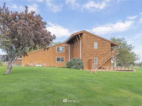 This cabin style home has rustic charm throughout. Exposed beams, vaulted ceilings, double fireplace with beautiful rock accents. 5 bedrooms total with 2 of those being master bedrooms. 2 full baths, 1 3/4 bath & 1 half bath. 4.8 acres with irrigation. 2 car garage and a fully insulated shop. Updated heat pump, furnace and mini-split. UGS throughout yard.