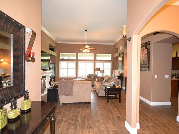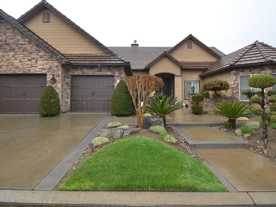 Beautiful 5 bed/3 bath home located in luxury gated community of Country Club at The Fort. This estate property features a gourmet kitchen with granite counters, island, breakfast bar, stainless steel built in appliances and pantry. With both an eat-in dining area and formal dining area, all centered around the family room with gas fireplace and herringbone set tile flooring - you'll love entertaining. This home features a master retreat with over-sized jetted tub, his and her vanities, a large walk-in closet and walk-in shower. The completely private backyard is in pristine condition and features a covered patio with grassy area and large pool. The isolated bedroom and bathroom is perfect for guests or a home office. Additions to this home include designer lighting, plantation shutters throughout, and curated landscaping for the courtyard style entrance. Clovis School Districts and premier North Fresno location!! Call today showings by apt only through agent.Buyer to verify bed count