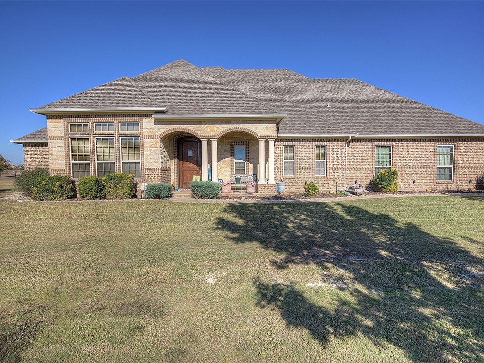 Exceptional Pope Custom Home in the prestigious Shadow Lakes Community. Showcasing timeless brick and stone architecture with a classic columned front porch, this home blends elegance and functionality. Inside discover 5 bedrooms, 3 and one-half baths, including an ADA-Compliant guest suite. The heart of the home features an expansive living room with a sunlit solarium, perfect for relaxing and enjoying backyard views. A large kitchen, with walk in pantry, stainless appliances and granite finishes. Perfect for the chef's dreams. Two Tankless Gas Water Heaters and Two HVAC units along with many other custom features.