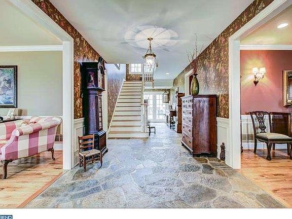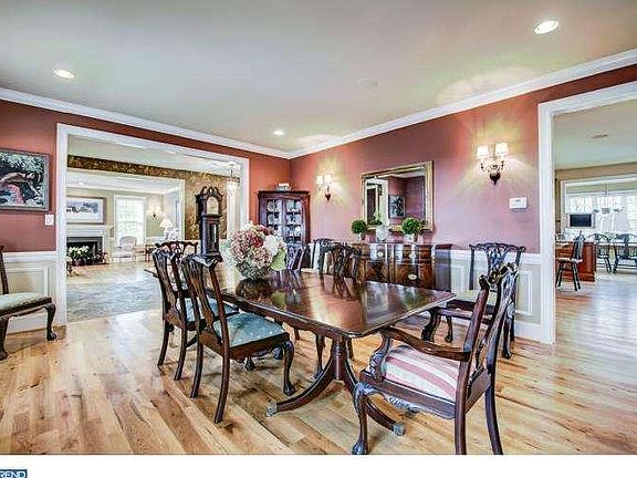 Grand Country Colonial on 3.86 acres surrounded by protected land. Idaho quartz adorns the magnificent entrance hall. Gleaming pine floors in the adjacent living, dining room and office/den. The gourmet kitchen/family room is of great proportions, vaulted ceiling, stone fireplace and custom bookshelves. Master bedroom boasts separate his/her walk-in closets, large master bath with gas fireplace. 4 additional bedrooms, 3 baths and laundry room complete the upper level. Huge finished basement with exercise room, second kitchen, home theater and walk-out to the beautiful property. Large deck spanning the length of the house perfect for family get togethers.
