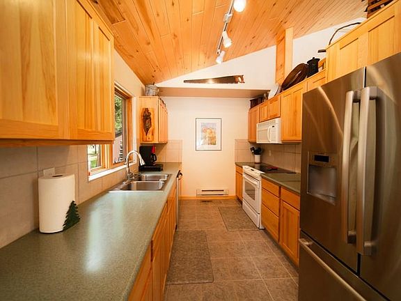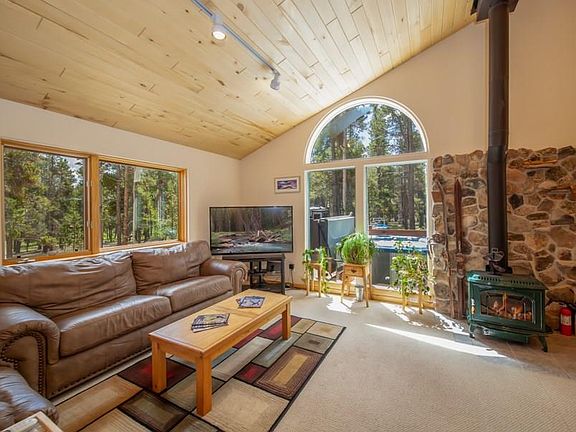 You'll love the mountain serenity that this 2-acre parcel offers! This 3 bedroom, 2 bath ranch style home has an inviting covered front porch, a sunny deck with a hot tub, huge windows in the living area, main floor master, open floor plan, gorgeous vaulted pine ceilings, wood stove, and a comfortable ambiance to come home too! Great spot for the outdoor enthusiast who needs room for a boat, rv, atv's and other toys. Property has a garage, large storage shed, and a wood shed.