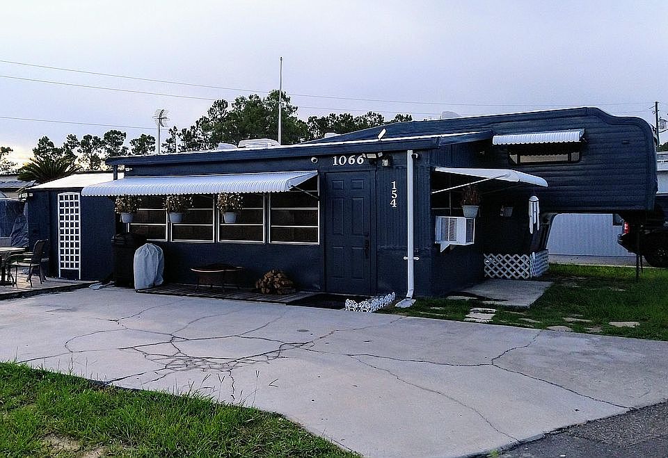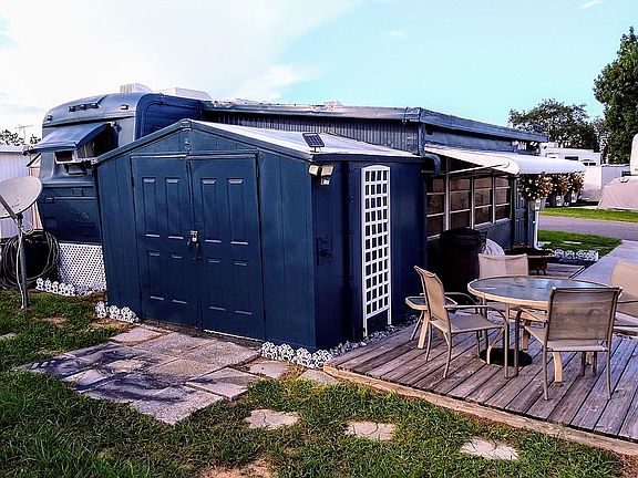 PRICE DROP! Was: $25,900 Now only $22,000 obo!! Get it while you can! We are selling our beautiful, rustic themed, 5th wheel "tiny home conversion" that is situated on a large corner lot (ample parking). Home is located inside of the Florida Camp Inn. If purchased, you would need to work with the Campground Office to pass a background check and sign a lease. You will then have a monthly lot rent that is approximately $405 and includes water/sewer service and lawn care. The Campground features an in-ground community pool, clubhouse, basketball court, shuffleboard area and horseshoe pits. Animals okay. Park is all ages. Highlights include: Master Bedroom has a queen-sized bed with built in hidden storage underneath. Two additional areas have been converted into cute and cozy twin-sized bed spaces (perfect for kids or teens). Mattresses for all three beds will remain with the unit for your convenience. Air conditioners: Brand new 12,000 BTU Hisense (coach) and a 15,000 BTU Whirlpool (downstairs). 1100-watt Toshiba microwave (1.2 cubic ft). New 20-gallon water heater (long hot showers). Brand new sink fixtures (kitchen and bathroom). Upgraded full-sized toilet. Large 220 sq. foot, insulated and enclosed family room that features 9 ft high vaulted ceiling. Extra-large 8 ½ foot long entertainment center (lots of built-in storage). New flooring and updated wall paneling. Freshly painted inside and out! Includes an 8’ x 10’ shed, a Weber grill and an outdoor fire pit. Priced to sell! Title in hand and ready for you to move-in. Showing is by appointment only. So please message us and arrange a personal tour of your new and affordable home! John & Nicole