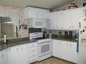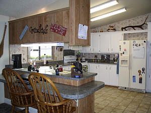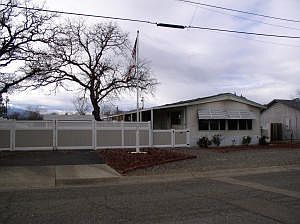 cb358. Very well maintained 2 bedroom 2 bath on a permanent foundation. Open floor plan, light and bright with vaulted ceilings. Some roll out drawers in kitchen cabinets. Living room windows are tinted for privacy. Laundry room. Full length deck and a detached 2 car insulated garage with shop area. Plenty of room for RV parking. Oversized driveway gates (16FT). Automatic drip system.