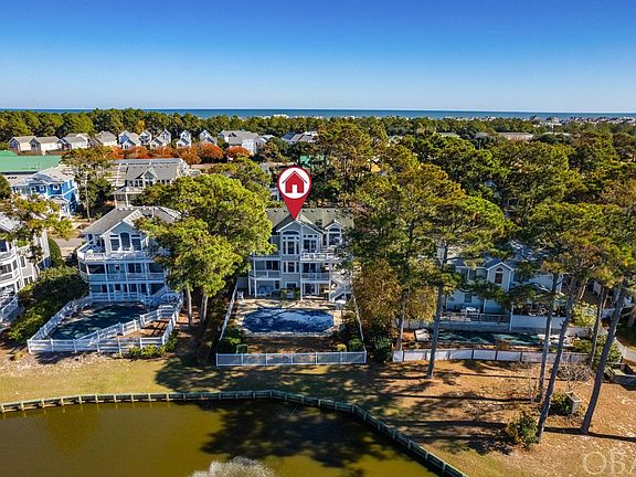 The most spectacular views await you at this 6 bedroom, 6.5 bath waterfront home in the Corolla Light community. Immaculately maintained and used solely as a second home, the home has a reverse floor plan with an open top floor that's perfect for dinners or entertaining. Regardless of the time of day, from morning bird watching to afternoon sparkle time across the water to glorious sunsets and magical stargazing under the twinkling sky, the top floor deck offers the perfect spot for relaxing or outdoor dining while enjoying stunning views of the Currituck Sound. Cathedral ceilings and expansive windows allow the the breathtaking vista to flood the gathering spaces and bedrooms. Hardwood floors, quality coastal furnishings, a cozy fireplace and multiple thoughtfully designed sitting and dining spaces create the perfect setting for memorable moments with friends and family. The immaculate, spacious, well equipped, open-concept kitchen is ideal for preparing delicious meals. One of the three king bed primary suites adjoins the great room with a soaring ceiling, private deck and large luxurious bath. Four lovely, sunny bedrooms with en-suite baths fill the mid-level with multiple decks and water or garden views. A daybed swing on the mid-level deck is a delightful spot to escape the heat and soak up the wonders of the sound. A second comfortable living room with well-designed kitchenette on the first floor has been newly redecorated to provide the perfect spot for playing games or watching movies with the family. It is adjoined by a large full bath and sixth bedroom that can double as an office that adds to the versatility of the first floor. Both living rooms look out on the beautiful pool, landscaped fenced yard with irrigation and the colorful perennial garden. The pool area is the perfect spot to sun bath, play games, cool off after a day on the beach and to toast the day watching a spectacular sunset. Fourth of July is particularly special here as you can watch the Whalehead Club fireworks from your back deck. While sitting by the pool you can enjoy the spectacular birds of the Currituck Sound. The pond with nature trail behind the house attracts herons, egrets, ospreys, swans, and ducks, and the gazebo behind the house is perfect for crabbing or launching your kayak or kiteboard. This house has been meticulously cared for, beautifully decorated and conscientiously updated, including two newly installed HVAC systems. The Corolla Light Community has won numerous awards as the premier resort community in North Carolina. The amenities at Corolla Light are unmatched. The Oceanfront pool complex has a terrific play area for the kids and has the only oceanfront restaurant on the Outer Banks offering amazing crab cakes. Owners have oceanfront parking at the pool complex, a summer trolley system, and chair and umbrella service that is available on the well-maintained lifeguarded Corolla Light Beach.Steps from this home there is a full indoor sports club with an indoor pool, full gym, sauna, and indoor tennis which is wonderful on those rare days with inclement weather. There are numerous outdoor tennis courts, pickle ball courts, basketball and volleyball courts and even a real grass putt putt course. The community is very well managed and well landscaped with a terrific schedule of activities for guests. This waterfront property truly is coastal living at its finest, offering not just a home but an unforgettable experience. With its ideal location, close proximity to community amenities, and the unparalleled view, this property is a rare gem. Discover the epitome of the Outer Banks lifestyle in every detail of this beautiful haven.