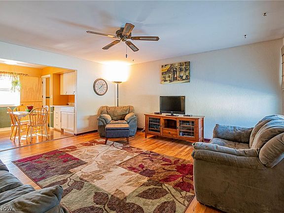 Cozy ranch located on a double city lot! This well maintained 3 bedroom ranch will be a perfectplace to call home. The main floor is 1040 sqft. Fresh paint and hardwood floors throughout the living room and bedrooms. Adorable eat-in fully applianced kitchen with white cabinets and plenty of cupboard space. Nice size bathroom with large vanity. Walkout lower level is partially finished, adding 520 sqft of living space for a total of 1560 sqft. Unfinished area gives you plenty of storage / work space! Laundry located in lower level. Washer and dryer also convey with the property. Sold as-is. Make your appointment today!