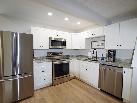 Lake Station is named after where trains in the early 1900's dropped passengers off for their summer vacations.  Ideally situated within walking distance of the picturesque Newbury Harbor and a mere 2-miles from Mount Sunapee Resort and its accompanying State Park. Immaculately renovated, this residence offers a seamless blend of modern elegance and cozy comfort. The first floor boasts an inviting open-concept design that seamlessly combines the kitchen and living room, creating a warm and welcoming space for gatherings and relaxation. The kitchen is adorned with exquisite granite countertops that exude both style and functionality, while the stainless steel appliances add a touch of contemporary sophistication. The culinary area also conveniently opens up to a delightful screened porch great for evening dinners. Adding to the allure of the first floor is a generously sized bedroom, complete with its own convenient half-bath. This thoughtful design provides comfort and convenience, making single-floor living a viable option. The second floor bedroom characterized by a large picture window that frames the stunning surroundings and offers a slight view of Lake Sunapee. .  This property has a tremendous rental history but certainly could be used as a primary residence or a fun second home.