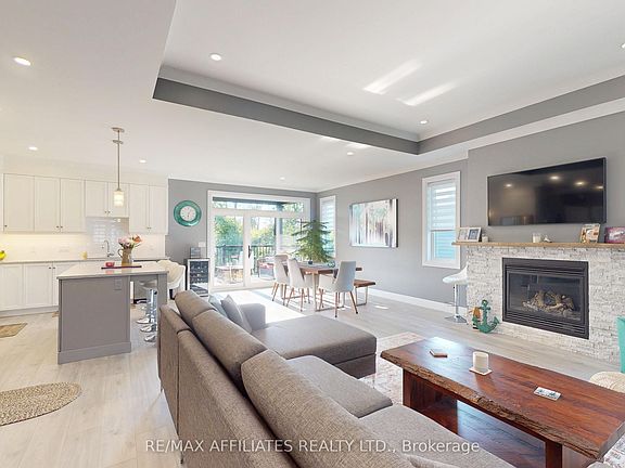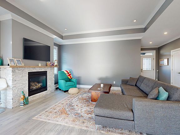Almost new, thoughtfully designed, and exceptionally built, this model home sits on a premium walk-out lot in the sought-after Bridlewood development. From the inviting front porch to the serene covered terrace, every inch of this property blends style, comfort, and functionality. Offering 3+1 generously sized bedrooms, 3 full bathrooms, and a fully finished basement, the home provides plenty of space for both family living and entertaining. The covered terrace overlooks the backyard, creating a private outdoor retreat perfect for morning coffee, evening wine, or simply enjoying the change of seasons. Inside, you'll find premium upgrades throughout, including nine-foot ceilings on both levels, a dramatic 10-foot tray ceiling in the great room, and energy-efficient casement windows that bathe the interior in natural light. Comfort is ensured with high-efficiency natural gas heating, central air conditioning, and on-demand hot water, while main-level laundry adds everyday convenience. Elegant crown molding, engineered hardwood, and meticulous finishes enhance the homes appeal. The remarkable designer kitchen features quartz countertops, under-cabinet lighting, a stylish backsplash, and an oversized island perfect for meal prep or gathering with friends paired with a full suite of almost-new appliances. The expansive great room is anchored by a custom gas fireplace with a striking live-edge mantle, making it an inviting focal point year-round. Thoughtfully planned and move-in ready, this home offers the best of Bridlewood living with nothing left for you to do but settle in and enjoy.