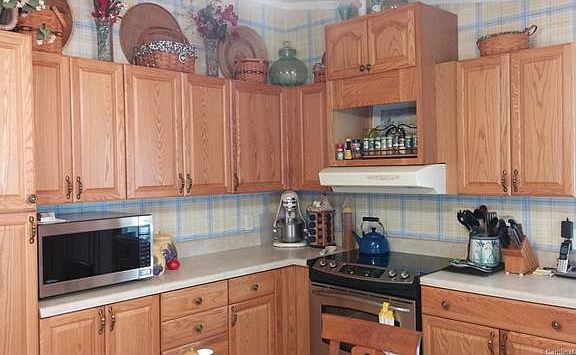 This home is extra clean & move-in ready. The spacious kitchen features stunning oak kitchen cabinetry, including an oak pantry. The current owner has added many upgrades some of which include installing mid-grade Anderson replacement windows, tile kitchen and dining flooring, stainless dishwasher and electric range, oak bathroom cabinets, a walk-in shower in the owner's suite, a handicap ramp at the rear of the home, a paved patio, 10' x 12' deck and a 24' x 32' detached garage / workshop.