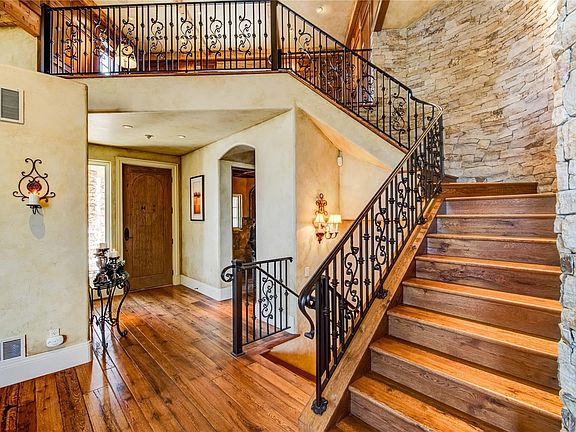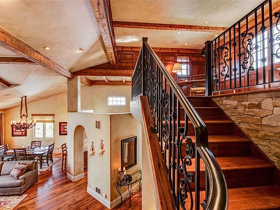 Over 200K in custom upgrades to include: custom chestnut floors, masonry laid stone work surrounding living wall and flows up the custom circular staircase. Steam shower in the custom master bath. Walk out basement. Second master in basement, wine cellar, Walk out to sweeping city views. Gourmet kitchen includes Sub-Zero refrigerator, Wolf gas range, Custom wood doors. No detail overlooked. Gated community and minutes from Cheyenne Mountain Zoo, and the Broadmoor Hotel. Views of Will Rogers Shrine and city views.
