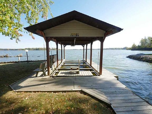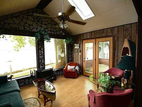 Completely remodeled in 1987, this 2-3 bed, 2 bath, lakefront home with open water views. This one of a kind Indian Lake property is surrounded by water on 3 sides with 409 linear ft of lake frontage! Your own peninsula near the very end of Turkeyfoot Point. Interior features include water views from most windows, skylights, private indoor whirlpool room,huge walk-in closet in master bedroom, newer SS appliances. Exterior benefits include newer rickrack seawall, covered boat dock w/power lift, and large deck that can be converted to a four season room and a golf cart garage w/storage overhead. Many updates. This turnkey home comes fully furnished along with fully stocked kitchen, linens, lawn equipment, tools and patio furniture. Start living your dream now. Don't miss another beautiful sunset at Indian Lake!!