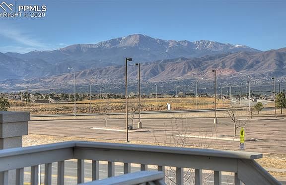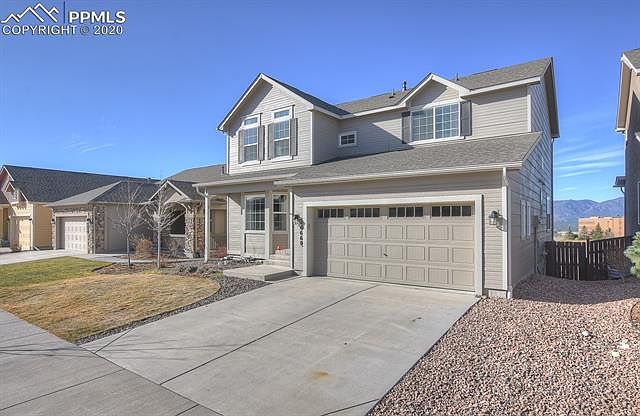 Amazing unobstructed views of Pikes Peak! North Fork is one of the very few new neighborhoods in D20 that has 6' privacy fences. The beautiful 2 story with a walk-out basement is move in ready. You are greeted with a light open living and dining room w/hardwood floor. The spacious kitchen has wood floors, granite counters and a pantry. The family room is open to the kitchen and features a fireplace and more of those amazing views. The main level also features a guest bath and laundry. Upstairs you will find a large master suite with 5 piece bath and walk-in closet. There are 3 more upper bedrooms 2 of which have walk-in closets. There is also a full bath with double vanity. The walk-out basement is an open canvas for future growth. The back yard features a large deck off the kitchen and a lower patio.