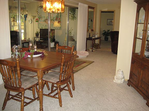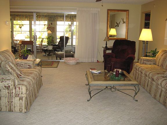 Wonderful home in 55+ community with no rear neighbors. Spacious open floor plan features formal living/dining room plus enclosed lanai with heat and air for a total of 1,718 square foot of living area. Kitchen with kitchen nook has corian countertops, ceramic flooring, and new energy efficient windows. Good size master bedroom and adjacent bath with double sinks and shower. Second bedroom is also a nice size. Sliders from both living room and kitchen lead out to lanai. Screened in front entry, 2 car garage with sliding screen. This home is in top condition with dimensional shingle roof new in 2004. Active clubhouse/pool and reasonable HOA at $42 per month.
