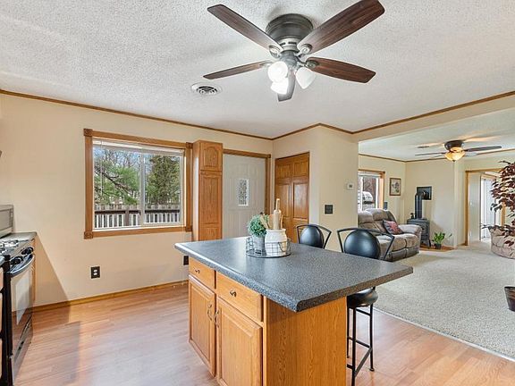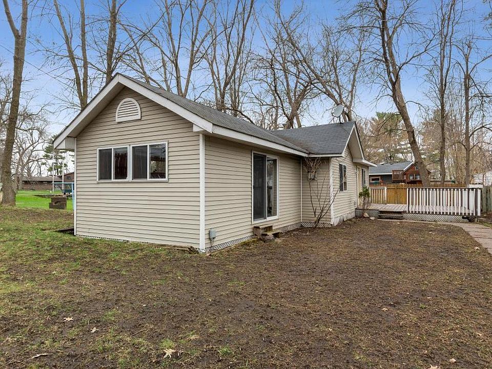 Welcome to this charming home offering all you need on one level! 2 bedrooms, 1 bathroom, main floor laundry, convenient eat-in kitchen with center island and new laminate flooring! Enjoy the comforting living room featuring a cozy gas fireplace, huge master bedroom with walk-in closet and patio doors to lead to a future deck! 20'x24' heated two car garage, a 16x16 deck & all of this situated on a private, quiet lot, surrounded by mature trees, seasonal lake views, just steps from Chisago Lake & minutes from public access to many lakes! A one year home warranty also included! We look forward to your visit!