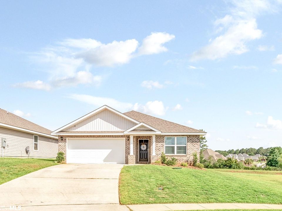 This beautiful 3 bedroom, 2 bath Aria style brick and vinyl home features an open floorplan for ease of living and perfect for entertaining! The kitchen has pretty classic white cabinets, granite countertops, undermount sinks, SS Frigidaire appliances and a functional Island with a breakfast bar. It has a breakfast room and spacious living room with a pretty shiplap focal wall and lovely designer colors throughout. The main bedroom suite has double sinks, a soaking tub/shower combo and a walk-in closet. The flooring is easy to maintain Luxury Vinyl Plank in the main areas and carpet in the bedrooms. This smart home has all the updated technology features you love. Exterior features include a double garage, a privacy fenced back yard, and a covered back porch. It's USDA eligible, located close to great schools, has a neighborhood pool and is convenient to shopping and dining. Only 3 years old this home is well maintained. You will think it's new! Seller will pay up to $3000.00 in CCPP for the buyer with acceptable offer.