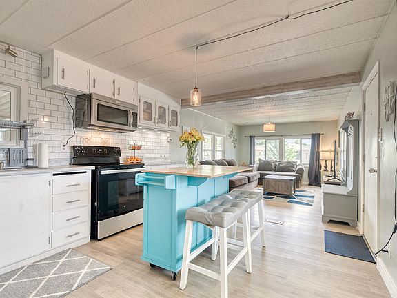 This home sits on one of the larger park lots and has been tastefully updated inside ready for a new homeowner. Yard features mature and well groomed landscaping with a fully fenced back yard. Covered patio is perfect for relaxing and enjoying your favorite beverage. Find ample storage in a large shed, lockable storage room, as well as additional storage under carport while still being able to tandem park two vehicles easily. Inside find new LVP flooring, interior paint, doors, and lighting throughout. Large living room Kitchen features a new sink, countertop, and tile backsplash and has additional prep space or seating with movable kitchen island. Bathroom has been fully renovated including a new tub/shower, toilet and vanity. Lot rent is $957.