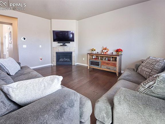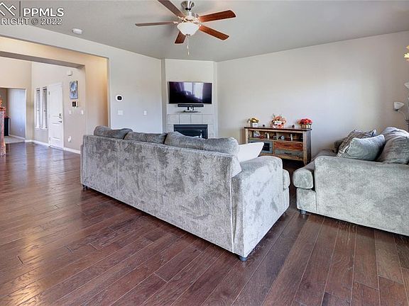 Well cared for home is waiting for its next buyer! Wood floors throughout the open concept main level. Lovely Kitchen with gas range, granite countertops and 42 inch cabinets. The master bedroom is absolutely massive with sitting area and a double sided fireplace that beautifully compliments the master bathroom. This property has so much to offer including, five bedrooms, office on the main level, plus a bonus room, 3 car tandem garage, window well covers, huge backyard that backs to open space. Easy access to Fort Carson and to Peterson AFB.