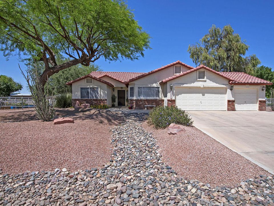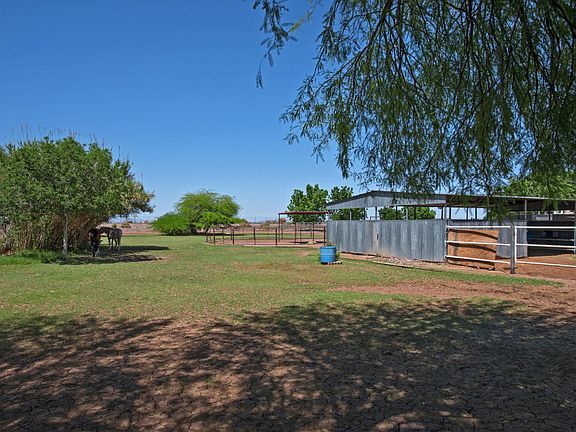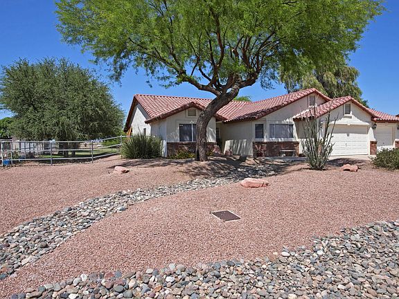 Look no further, this lovely home with open living space and split floor plan has been meticulously maintained. Greatroom concept and spacious kitchen with Silestone counter tops and all appliances are included! Master suite is very spacious. Animal lovers-there is plenty of room on this irrigated acre+ N/S exposure lot. If you have toys, look no further. RV gate and 3 car garage with built in cabinets. For your horses, the property includes 4 stall mare motel, corral, barn, and tack room. There is also bridle path access from the property so you do not have to trailer your horses to go ride. Amenities close to spring training, cardinal football stadium, Westgate shopping and restaurants. This home has it all and then some.