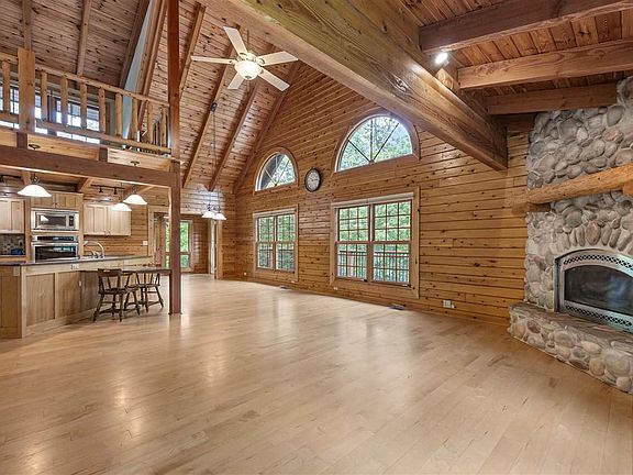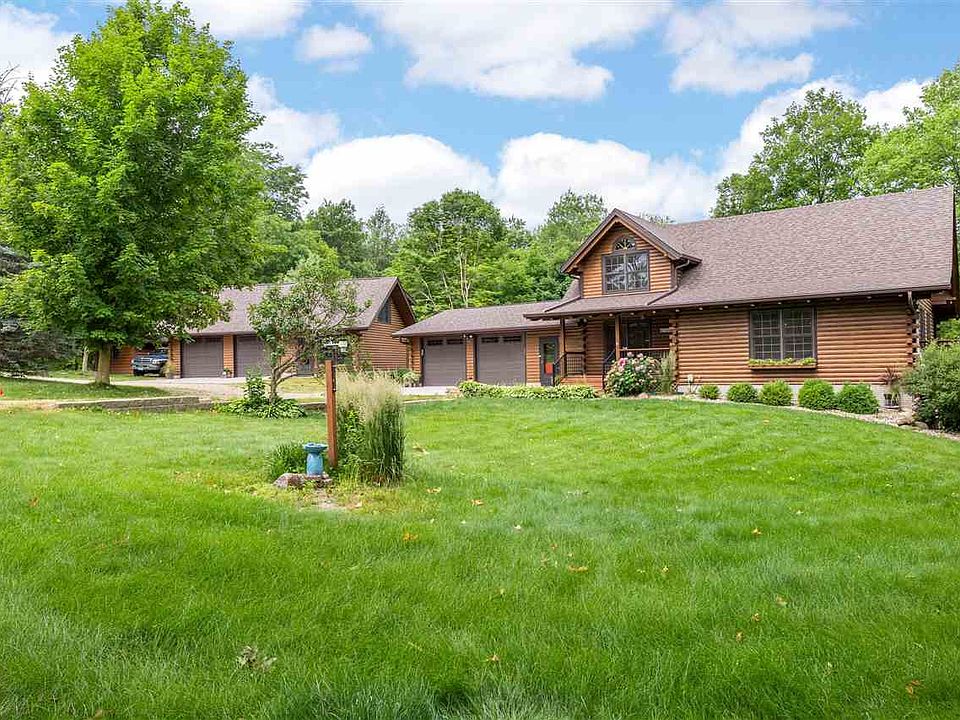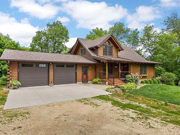 How would you like to go to camp every day? This immaculate log cabin home, situated on a private road in Anamosa, can make it happen! Enjoy more than 1.5 acres with continual blooming foliage surrounding you! Stepping inside, you'll be greeted with impressive vaulted ceilings and three levels of rustic space, each one featuring a spacious bedroom and full bath. The back of the home features a four seasons porch on main level, and a three seasons porch on the lower level, including a walk-out entrance, where you can enjoy viewing a plethora of wild life! Stay cozy with two gas fireplaces. Bring your vehicles and toys because this home features four garage stalls. Two are attached and two are unattached in the man cave/she shed. This structure features a main floor for projects or fun, a half bath on main level, and a second story loft. All appliances are included. Come check it out today!