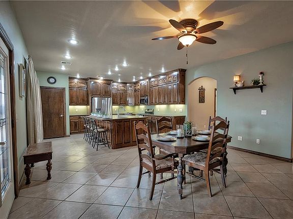 12.6 Acres, 40x60 Insulated Shop, Beautiful Brick Home, Priced For Quick Sale! THis property offers aprx. 3,133 square feet of living space, a split bedroom floor plan and 3 full baths. Oversized master suite with luxurious en-suite bath which feautures a tile walk-in shower, jetted garden tub, double sinks and spacious walk-in closet. Gorgeous kitchen with large island, bar seating, spacious pantry, abundance of cabinets, stainless steel appliances w/ gas stove. 2nd bedroom serves as a second master w/ en-suite bath. 3rd bedroom offers a safe room closet. Oversized laundry/bud room. There are 2 outdoor entertaining spaces w/ covered patio. One patio is bricked on 3 sides which protects from outdoor elements. A small pond is located on the west end of the property. *tankless hot water heater.*arched doorways*tile flooring throughout.