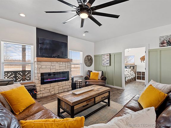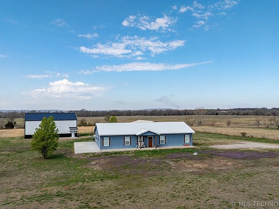 Welcome to your dream home nestled on 14.25 acres of serene countryside with mineral rights included! Step inside to discover a beautifully crafted open floor plan complete with wood-look vinyl plank flooring throughout and vinyl windows that flood the home with natural light. Cozy up by the electric fireplace with remote control in the living area or gather around the kitchen island, subway tile backsplash, and a gas stove with a convenient pot filler. The primary bedroom offers a walk-in closet and luxury bath featuring a jacuzzi tub, separate shower, and new plumbing. Dedicated office with built-in desk and sliding doors for privacy. The property also features a new 50 x 40 metal building with concrete floor, electric, 18' walls & (2) 10 x 12 roll up doors. 30 x 50 metal shop with new electric and concrete floor provides ample space for projects and hobbies. With a metal roof, extra insulation and tankless water heater, this home combines comfort, convenience, and energy efficiency. For added peace of mind, a security system with a ring doorbell and security camera on the back porch ensures your safety and security. Oversized covered back porch offers the perfect place to watch the sunset. Don't miss your chance to own this incredible property with endless possibilities for country living at its finest!