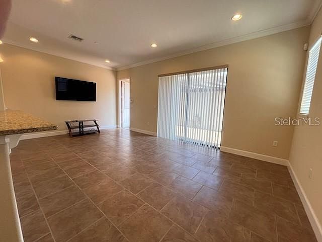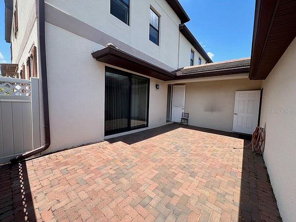 Premium townhouse located in convenient location walking distance to shops, restaurants, grocery stores and so much more! Top of the line everything in this three bedroom, two and half bath, double car garage (with overhead storage units), three outdoor areas to enjoy, good sized dining room with double doors opening to the front porch, gourmet kitchen featuring gas stove and TWO double door pantries, upgraded antique cream cabinets and plenty of them, granite countertops, cozy eat-in breakfast nook, large family room with large flat screen tv included, very spacious outdoor patio area off the family room, large downstairs storage closet, iron railing leads you upstairs to the master bedroom with tray ceiling, with great balcony to watch the NIGHTLY DISNEY FIREWORKS, large double doors leads you to the master bathroom with big shower including double sinks and granite counter tops, large walk-in master closet with window providing tons of natural lighting, two other bedrooms on this floor with another full bathroom and laundry conveniently located on the upper level making things super easy! This is a corner unit providing tons of natural lighting. Brand new AC/Handler installed this week with Smart programmable by phone capability. All info is intended to be accurate, it is up to the tenant to verify all information. minimum one year or long term highly desired