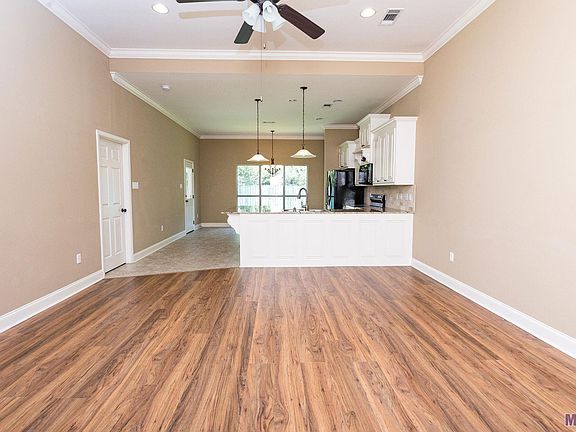 This charming 3 bedroom/2 bath home is conveniently located on a quiet street in the front of The Lakes at North Park Subdivision in Denham Springs. Home offers an open floor plan with zero carpet and Lifeproof vinyl flooring in master and second bedroom (installed in 2022), laminate in den, hall and bedroom 3, crown molding, recessed lighting, and a warm, crisp feel with neutral colors throughout the home. The kitchen features newly installed (2023) Stove, Microwave and Dishwasher, white custom-built cabinetry, granite countertops with a breakfast bar, pendant lighting, and a spacious dining area with large windows for natural lighting. Bedrooms are all spacious and the master bath features a double vanity and separate shower. You will love your evenings outdoors under the covered patio with views of the private, wood-fenced-in backyard with a small flower garden which backs up to a wooded lot. New Air Conditioner unit installed 2021 and the attic above garage space is even insulated. This house did not flood in the 2016 flood in Denham Springs. Call for your appointment today! *Structure square footage nor lot dimensions warranted by Realtor*
