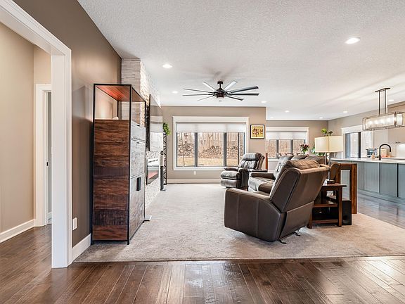Amazing opportunity to own stunning, move-in ready smart ranch w/ lots of upgrades, inviting open concept layout, luxurious primary & screened porch w/ hot tub in highly desirable Azbury Woods subdivision—part of SWAC school district! Tucked away in back of quiet & peaceful neighborhood off Lower Huntington Rd, this 3 bed, 2 full bath home comes equipped w/ alarm system (Ring doorbell & smart lock front door), irrigation & central vacuum systems, underground fence, built-in gas fire pit on extended back patio, PLUS Blaze Premium grill attached to natural gas, Master Spa Hot Tub, kitchen refrigerator/microwave/double oven/dishwasher, dryer & 85” TV—all included in sale allowing you to move right in & start living your best life! Built in 2018, it’s been impeccably maintained from outside in & is sure to wow from moment you arrive! Beautiful exterior is mix of vinyl & stone facade w/ detailed landscaping & attached 3 car garage w/ tire rack (3rd bay has high lift garage door that can be used w/ golf simulator or lift & 220V outlet for woodworking or EVs). Covered front entry opens to bright & welcoming atmosphere complemented by wood flooring, warm earth tones & high end finishes including modern lighting elements & hardware. Large foyer w/ chandelier connects to main living room featuring floor to ceiling white stone gas fireplace/entertainment center, industrial ceiling fan & plenty of natural light from big picture windows facing the back yard. Living is open to eat-in kitchen w/ central island great for quick bites, abundant cabinetry, hard surface counters, SS appliances & pantry. Dining zone perfect for entertaining has panoramic back yard views & sliding glass doors lead to walk out 3 season room w/ hot tub, ceiling fan & sun shade—bound to be a popular gathering point! Impressive primary bedroom has tray ceiling, built-in storage, huge walk-in closet w/ build-ins which connects to sizable laundry room w/ utility sink by garage access & gorgeous en suite bath starring a fantastic tiled glass walk-in shower. Remaining 2 bedrooms are both comfortably sized w/ ample storage throughout. Note: pass-through for electronics outlets hidden in recessed cabinets in both primary bedroom & living room. Generous back patio is ideal for kicking back & relaxing in your own realm w/ private feel due to backing up to a small tree line. Bonus: There’s a community pool so you can keep cool all summer long! Minutes from I-69 & I-469—don't miss out, take action today!