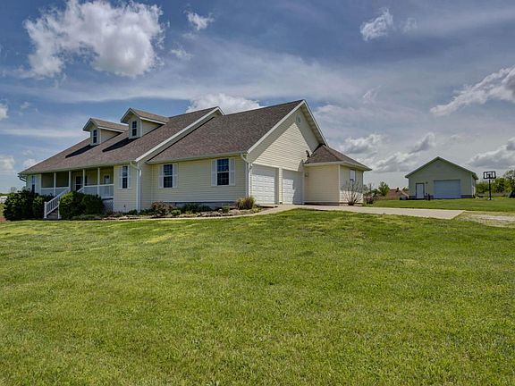 This 4 bed, 2 1/2 bath home has a spacious split bedroom floor plan, its clean and well kept, and sits on 5 beautiful acres. So many extras in this home!!! Big beautiful front porch that overlooks a breathtaking view. Gorgeous hardwood flooring. Bedrooms are spacious and all have their own walk in closets. Master has his/hers walk in closets, jetted tub. Bathrooms are huge. Extra family room that could be used for play room, big office, etc. Tons of storage. Outbuilding can be used as workshop or extra garage space. This home is very versatile. It's a must see!!!