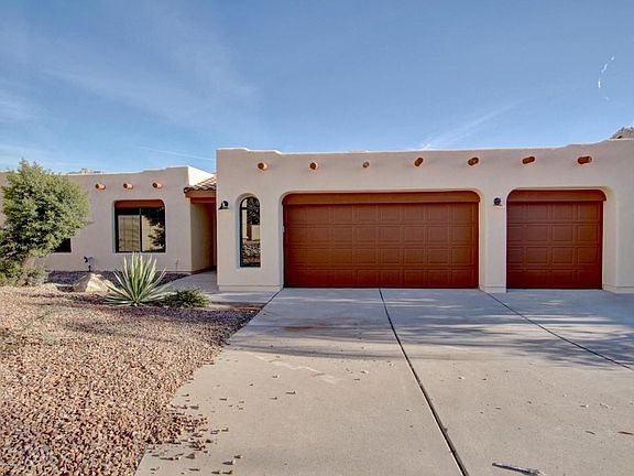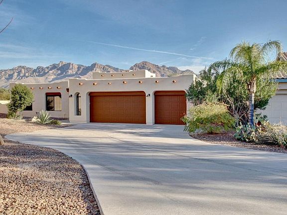 Beautiful home with gorgeous mountain vies! This is THE ONE! Beautiful Santa Fe style Tucson home surrounded by gorgeous mountain views! Flowing open floor plan w exposed beam ceilings, tile flooring, & picture windows that capture the majestic mountain views. Cozy fireplace will surely keep the brisk winter nights at bay! Create a culinary delight in the upgraded eat-in kitchen with stainless steel appliances, a plethora of cabinets, center island, & ample counter space. Large master suite has a private exit, walk in closet, & adjoining spa-like bath w garden tub & separate shower. Relax under the covered patio that overlooks the meticulously landscaped backyard & of course the scenic mountain backdrop! This home is ready for your personal touches! See it today and start living!Owner/ag