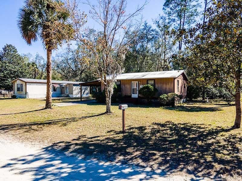 Cute, cozy and ready for new owners. This home has only been used seasonally each year for winter months. 1987 manufactured home includes 2 bedrooms, 1 bathroom with 736 living square feet. NOTE: New roof and plumbing being completed 2/2024. Located on nicely sized .29 acre corner lot in great location. Upon entering home you will see carpeted living room, open floor plan with dining area and kitchen with lots of cabinets and counter space. Bedrooms are cozy in size and bathroom includes tub/shower combo. Outside includes paved 10x20 concrete patio under the shade trees with variety of seasonal bird watching. Covered carport is 12'x23' and located few steps from storage/workshop with power and dryer(washer is located inside). Home comes fully furnished and is move in ready with everything you need. Located minutes to downtown Fort McCoy with grocery store, doctor office, pharmacy, hardware, gas station, pizza delivery and more. Close to Silver Springs which is great for kayaking, boating and outdoor activities. Ocala is just another 20 minutes away with Walmart, Lowes, Bealls, Outback and many more of your favorite shopping and restaurants. Gainesville(Home of Florida Gators) is only 50 minutes to downtown. If you’re a fisherman, hunter or simply love hiking, canoeing or kayaking you are in luck! Minutes to Ocklawaha River, Rodman Reservoir boat ramp, Ocala National Forest and many natural springs(Salt Springs, Silver Glen Springs, Juniper Springs), horseback and walking trails, and off road vehicle trails awaits your explorations. One of a kind property and location! Ready for new owners!