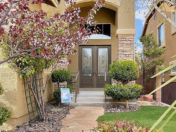 *SHOWINGS TO BEGIN APRIL 3rd* Agents bring your buyers, offering 2% commission. Gorgeous home in the heart of Summerlin! 4 bedrooms with the option of a large 5th by converting a bonus room. The master bedroom has a large sitting room and fireplace, as well as a newly renovated bathroom! The kitchen is updated with quartz countertops and new appliances. Well maintained backyard oasis with grassy area and pebble tec pool with tanning ledge and solar heating! This home has lots of storage, and built-ins in all bedroom closets. Other features include: security system, ring doorbell & cameras, smart thermostats, smart app-based sprinkler system, ceiling fans in all bedrooms.