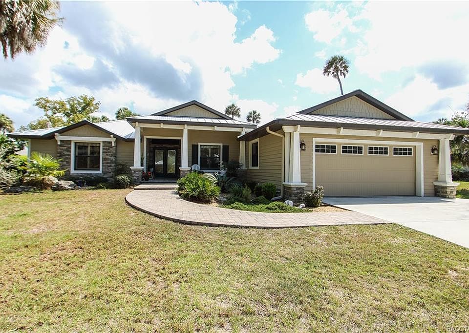 LOCATION! LOCATION! LOCATION! This is pure PARADISE! The .79 acres and 132 ft of Homosassa river frontage alone is enviable. Oh but wait until you get inside! The pictures DO NOT do it justice! This 3/2 home has crown molding throughout living and dining rooms, wood plank tile through living areas, custom wood cabinets in the kitchen, both bathrooms, custom wood breakfast bar, pass-through shelf & custom bar cabinet with wine frig, this level of workmanship is a lost art! Master bath has over sized dual head tile shower, walk in closet with dressing area as well as a towel heater for your comfort! Two car attached garage as well as two car detached garage with work room and two car covered carport, there is no shortage of man space here! Large screen room off living area takes you out to spectacular yard and covered boat shed w/lift as well as separate covered dock for enjoying those beautiful Florida sunsets. Must see to truly appreciate this rare find!