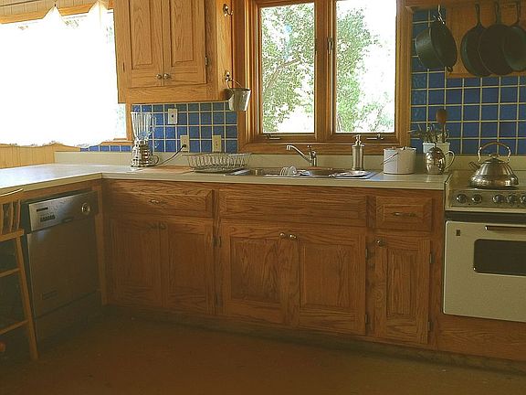 This property will be available on a rent-to-own basis if I'm not able to sell outright in the near future. I will rent only month-to-month because I'm seeking to sell. Located in the highly desirable area south of Del Norte, this well maintained home with a 1.5 car attached garage is close in proximity to hear and see Pinos Creek. Rio Grande National Forest abuts this hillside property offering a peaceful and scenic retreat. Close to a unique farming and ranching community, this mountainous area offers abundant natural beauty and recreational sites in all seasons. The main living area has lovely oak flooring, a wood stove enclosed by a unique rod-iron screen, a wood beam ceiling on part of the main level, and large picture windows fill the home with natural light. Spacious open kitchen/dining area gets a.m. sunlight and has ample cupboard storage, and a pantry. The large enclosed yard can be used as a deer-protected garden, or as a dog run. Wood decks with lovely views surround the home. Landscaping largely consists of local flora and takes little to no maintenance, and the property has been kept weed-free. The large enclosed deck offers small children a safe outdoor play area, and the indoor small loft is a fun child's play area that can alternately be used as accessible storage. Additional new improvements are metal roof, all wood, slate and cork tile flooring, home outfitted for 12-person vacation rental; 2 hardwood garden boxes to yard area; cultivated moon roses along front driveway side, and chicken coop. No Covenants, natural gas a plus, and furnishings included. Owner will pay utilities if month-to-month and will charge renter extra amount for utilities $400/month. Longer lease only if rent to own. If rent-to-own, renter will pay utilities.
